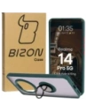 Etui z uchwytem na palec Bizon Case Hybrid Ring do Realme 14 Pro 5G przydymione z ciemnozieloną ramką