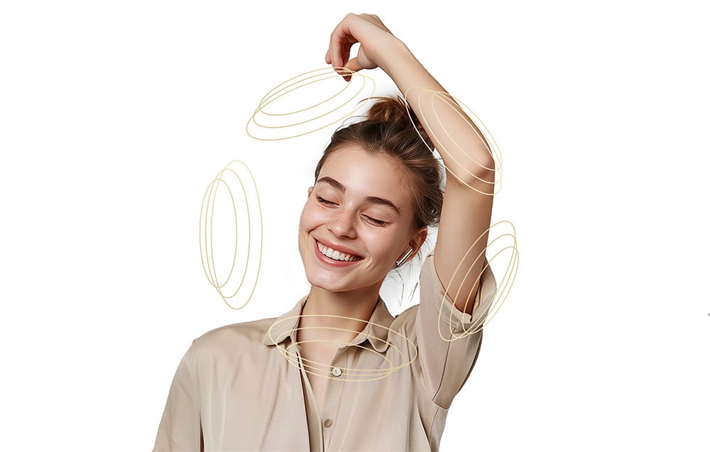 Jeśli lubisz wiedzieć, co dzieje się wokół Ciebie, skorzystaj z trybu transparentnego. Możesz regulować jego natężenie na 6 poziomach tak, aby w pełni dostosować działanie słuchawek do własnych potrzeb. Co więcej, jeśli ktoś będzie chciał z Tobą porozmawiać, MeloBuds Pro HT08 automatycznie podkreślą głos Twojego rozmówcy i wyciszą dźwięk otoczenia.
