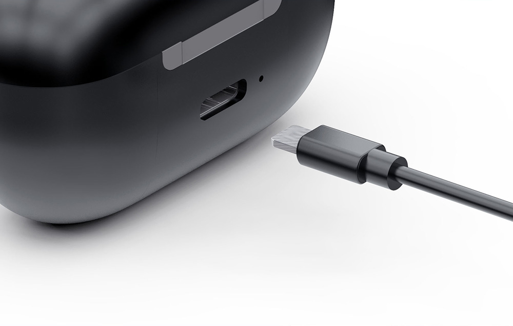 Słuchaj muzyki tak długo, jak chcesz, bez niepożądanych przerw. W pełni naładowane słuchawki mogą odtwarzać muzykę nawet przez 3,5 godziny na jednym ładowaniu, a wchodzące w skład zestawu etui ładujące pozwala wydłużyć ten czas do około 17 godzin. Lekkie i przenośne - zostało wyposażone w port USB-C.