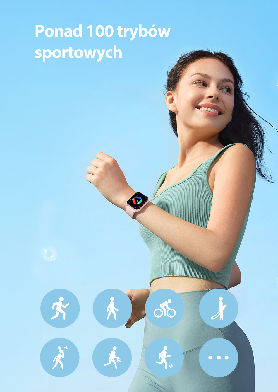 SmartWatch oferuje ponad 100 trybów sportowych, umożliwiając użytkownikowi szeroki zakres monitorowania aktywności fizycznych. Dzięki tej funkcji można łatwo śledzić oraz analizować różnorodne rodzaje treningów oraz osiągnięcia sportowe.