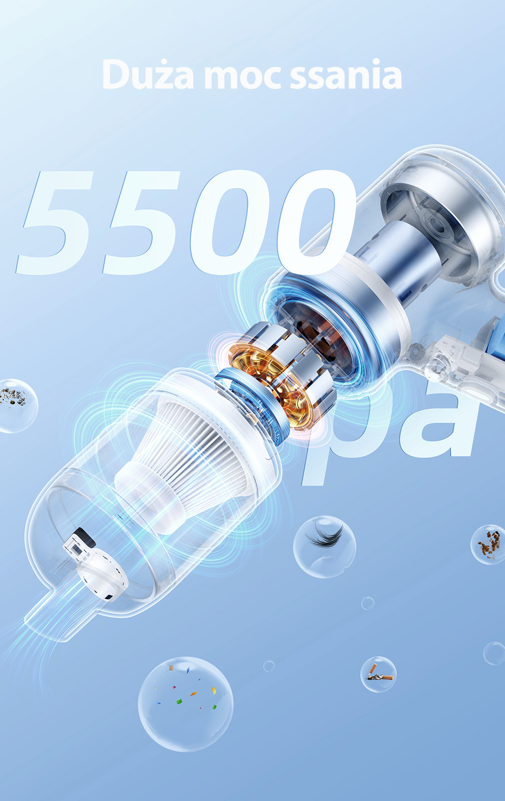 Dzięki mobilnej konstrukcji i wysokiej mocy ssania, pozbywa się zabrudzeń nawet z najmniejszych zakamarków, sprawiając że sprzątanie staje się dużo przyjemniejsze.