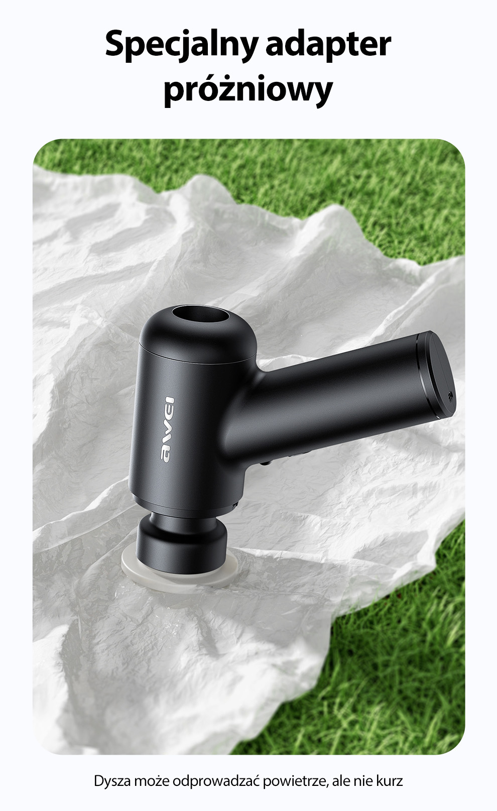 Dodatkowo w zestawie wymiennych końcówek, dostępny jest specjalny adapter próżniowy, który pozwoli Ci na szybkie odsysanie powietrza, bez konieczności inwestowania w specjalny sprzęt do pakowania próżniowego.