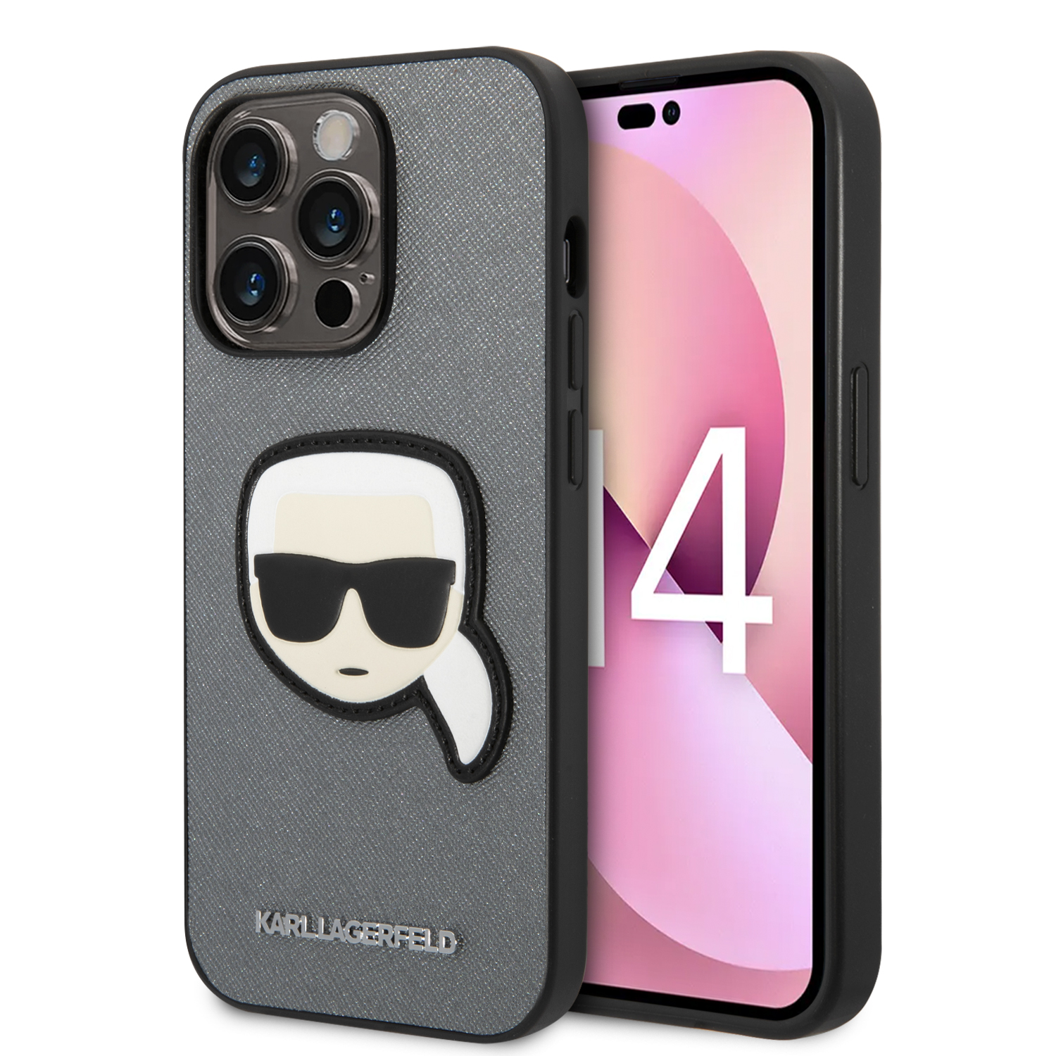 Etui Karl Lagerfeld KLHCP14LSAPKHG Apple iPhone 14 Pro srebrny/silver hardcase Saffiano Karl`s Head Patch