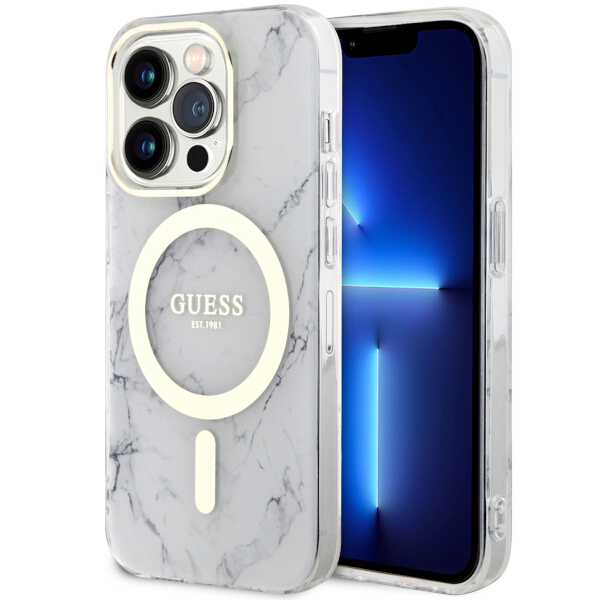 Etui Guess GUHMP14LPCUMAH Apple iPhone 14 Pro biały/white hardcase Marble MagSafe