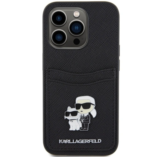 Etui Karl Lagerfeld KLHCP15LSAPKCNPK Apple iPhone 15 Pro hardcase Saffiano Cardslot Karl&Choupette Metal Pin czarny/black
