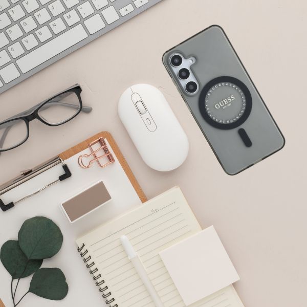 W centralnej części etui znajduje się logo Guess, które subtelnie podkreśla prestiż tego etui.