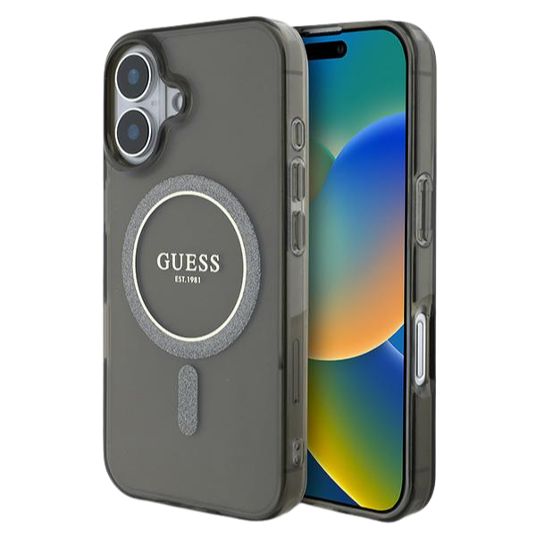 Etui Guess GUHMP16MHFGEREK Apple iPhone 16 Plus hardcase IML Glitter Circle MagSafe czarny/black