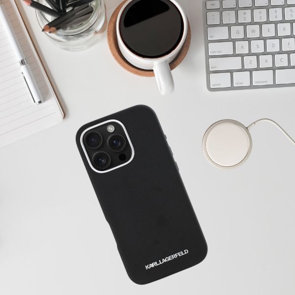 Etui Karl Lagerfeld Saffiano Full Wrapped Elongated Metal Logo MagSafe do Apple iPhone 16 Pro czarny