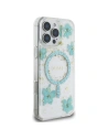 Etui Guess Resin Flowers Glitter MagSafe do Apple iPhone 16 Pro turkusowy