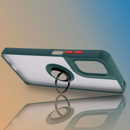 Etui z uchwytem na palec Bizon Case Hybrid Ring do Motorola Moto G05 / E15 przydymione z ciemnozieloną ramką