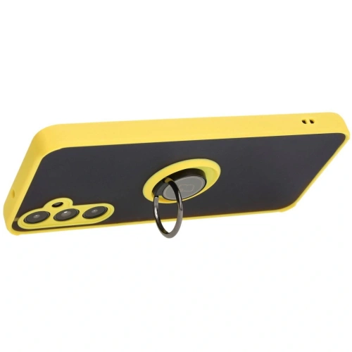 Etui z uchwytem na palec Bizon Case Hybrid Ring do Samsung Galaxy A05s przydymione z żółtą ramką