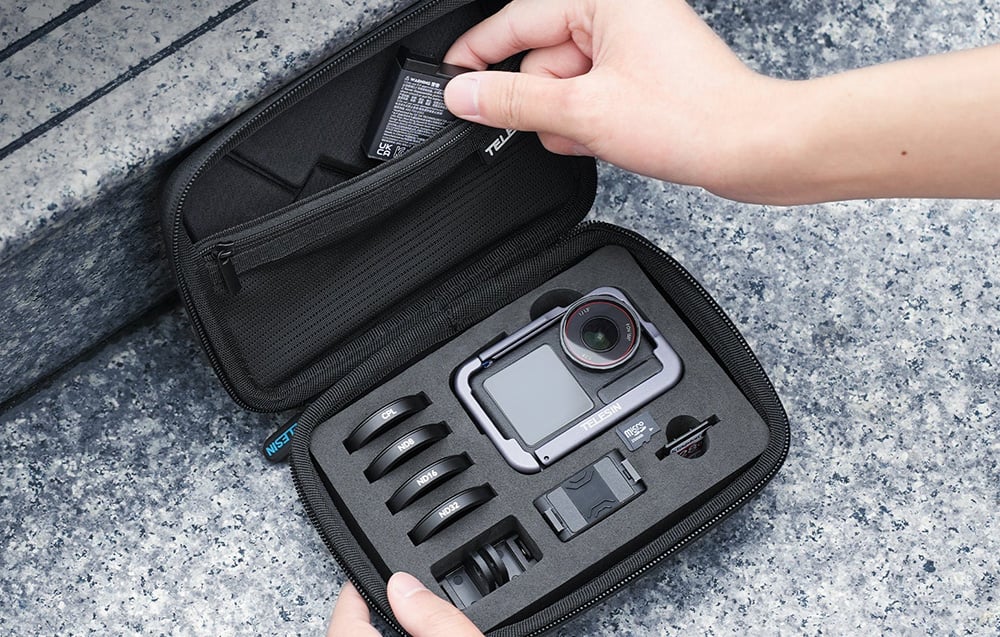Torba Telesin waży niecałe 180 gramów, a jej wymiary (180×138×60 mm) czynią ją idealnym rozwiązaniem dla osób, które chcą mieć cały zestaw zawsze pod ręką. Można ją przypiąć do plecaka, nosić w dłoni lub po prostu schować do kieszeni bocznej torby turystycznej. To praktyczne rozwiązanie zarówno dla twórców vlogów, jak i dla podróżników, którzy cenią porządek, szybkość działania i bezpieczeństwo sprzętu.