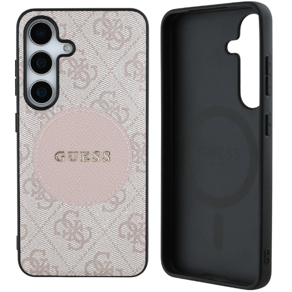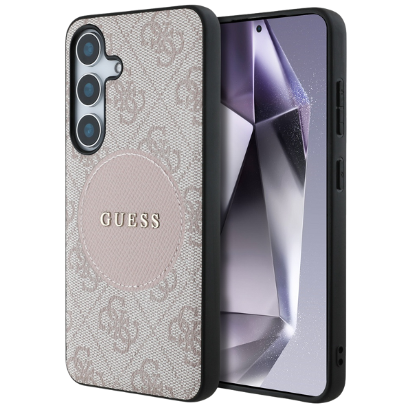 Guess 4G Rund-Patch Klassisches Logo MagSafe Samsung Galaxy S25+ Plus pink