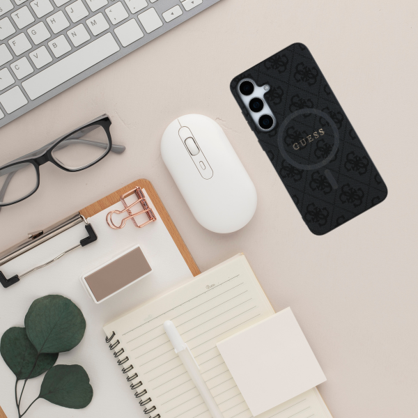 Ekskluzywne etui ochronne od renomowanej marki Guess to połączenie elegancji i stylu na najwyższym poziomie. Etui pokryto wysokiej jakości skórą ekologiczną, której powierzchnię zdobi charakterystyczny wzór 4G oraz pierścień MagSafe.